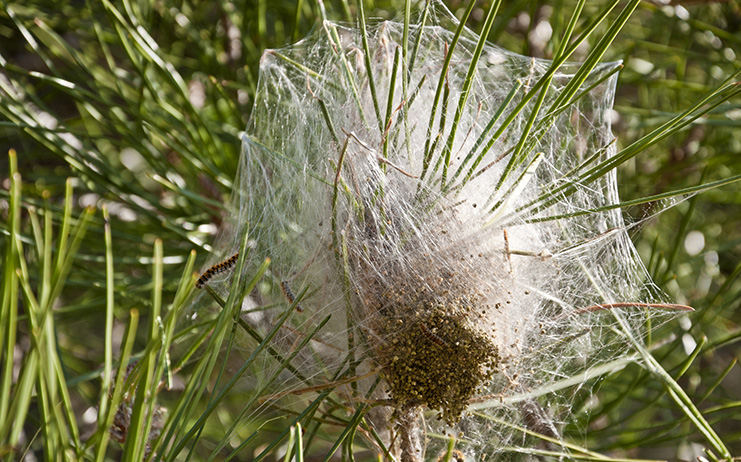 La acción de estas orugas sobre las hojas de los pinos provoca que muchos se debiliten, hasta tal punto que son más vulnerables a la acción de otras plagas que, finalmente, en muchos casos, les causan la muerte.