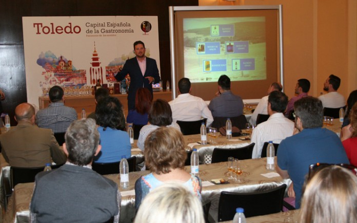 El Centro Cultural San Marcos ha acogido esta tarde la ‘coctelclass’ inaugural del programa “Combinados de Corpus”, que ha consistido en una cata de diferentes whiskies de Malta maridados con distintos quesos manchegos, un ingrediente que también se ha utilizado en forma de crema para realizar un cóctel muy particular y que se espera que recojan en sus cartas de bebidas los establecimientos hosteleros de la ciudad como algo propio y autóctono.
