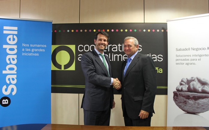 Banco Sabadell y Cooperativas Agro-alimentarias de España han firmado un acuerdo de colaboración mediante el cual la entidad bancaria pone a disposición de la organización, que representa los intereses del movimiento cooperativo agrario español, un catálogo de productos y servicios para apoyar sus necesidades financieras. En ese catálogo, destaca una línea de financiación de 50 millones de euros que Banco Sabadell ha acordado con el Banco Europeo de Inversiones (BEI) para impulsar el desarrollo de proyectos realizados por empresas y autónomos del sector agroalimentario.