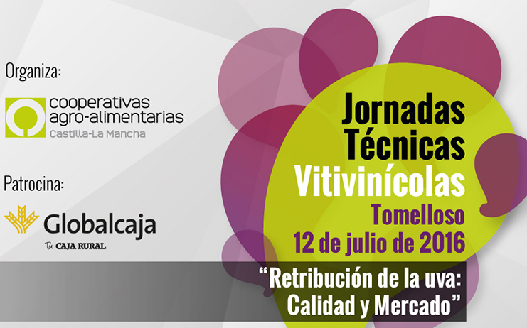Cooperativas Agro-alimentarias Castilla-La Mancha celebrará el 12 de julio en Tomelloso unas jornadas técnicas vitivinícolas sobre la retribución de la uva, mercado y calidad. Será a partir de las 9:00 horas en el Salón de Actos del Instituto Regional de Investigación y Desarrollo Agroalimentario y Forestal de Castilla-La Mancha -IRIAF- (Antiguo IVICAM).
