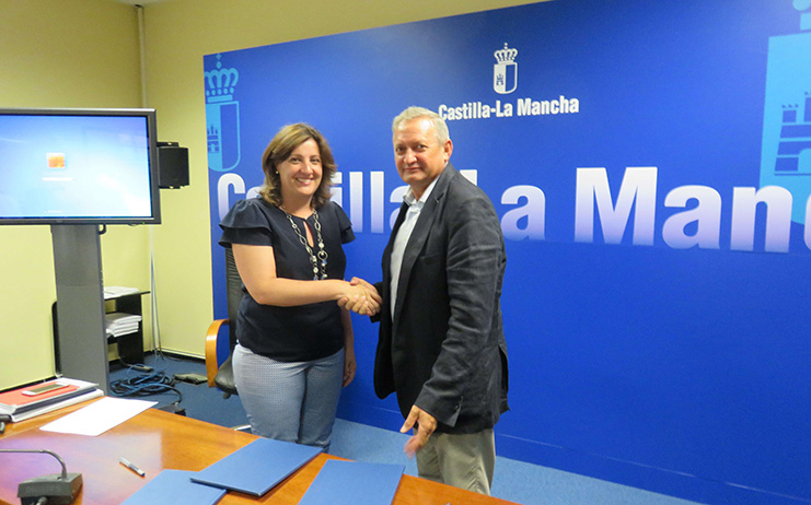 La consejera de Economía, Empresas y Empleo, Patricia Franco, ha firmado con el presidente de Cooperativas Agroalimentarias Castilla-La Mancha, Ángel Villafranca un convenio mediante el cual la Consejería, a través del Instituto de Promoción Exterior, IPEX, concede una subvención nominativa de 10.000 euros para fomentar la integración de su oferta de cara a la exportación.