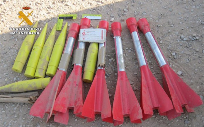 La Guardia Civil ha desactivado seis cohetes antigranizo, con una antigüedad de 40 años y en perfecto estado de conservación, localizados por un particular que realizaba tareas de limpieza en una finca rústica del término municipal albacetense de Tarazona de la Mancha.