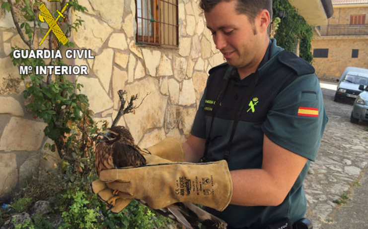 Efectivos del Servicio de Protección de la Naturaleza, Seprona, de la Guardia Civil de Guadalajara ha recuperado en la localidad de Anguita (Guadalajara) una cría de aguilucho cenizo (Circus Pygargus), una rapaz protegida en la zona.