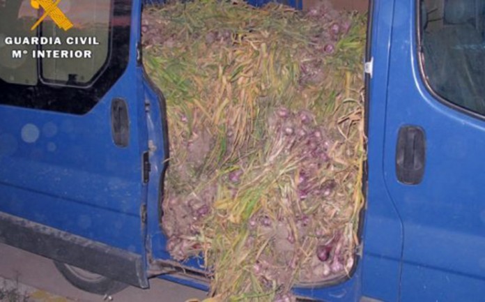 Una vez parado el vehículo se procedió a la identificación de sus dos ocupantes, comprobándose como en su interior se apilaban 35 cajas de ajos, con un peso medio de 22 kilogramos y que llevaban grabadas las inscripciones de la explotación. Estas cajas quedaron intervenidas al no poder acreditar estas personas su legal procedencia.