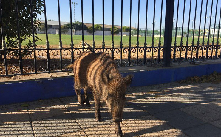 Varios ejemplares de jabalíes campan a sus anchas desde hace unos días por las calles de Villanueva de la Fuente (Ciudad Real). Los animales han sido vistos, y fotografiados, por zonas como el campo de fútbol, calles céntricas de esta localidad del Campo de Montiel o, incluso, por los aledaños de un parque.