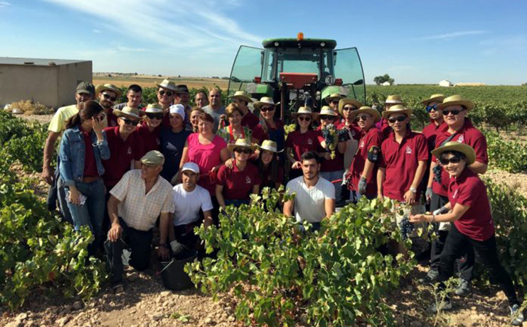 Una treintena de compradores de vino de origen chino, invitados por la cooperativa ‘El Progreso’ de Villarrubia de los Ojos (Ciudad Real), han participado en labores de vendimia para conocer cómo llevan a cabo la recogida de la uva que luego sirve para producir los caldos que compran en su país.