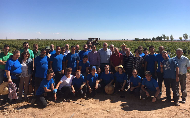 El consejero ha saludado a los veinticinco integrantes de la cuadrilla de vendimia, ‘Los Capacortas’ que se encontraban en esos momentos recolectando la uva de una viña centenaria, acompañado del presidente de la junta rectora de la Cooperativa Jesús del Perdón, Félix Cano; el alcalde de Manzanares, Julián Nieva y los hermanos Parada, dueños del viñedo. En este sentido, Martínez Arroyo ha hecho referencia a los precios al alza y la excelente calidad de la uva, impulsada por la planificación del sector desde la Consejería de Agricultura, “de esta manera ayudamos al sector vitivinícola de la región, pero también a nuestro medio rural en el que una buena vendimia en la que hay buenos jornales y buen precio de la uva, cambia el estado de ánimo de los pueblos y se benefician otros sectores económicos”. “Esto está pasando esta vendimia y tiene que ser motivo de orgullo para todos», ha concluido.