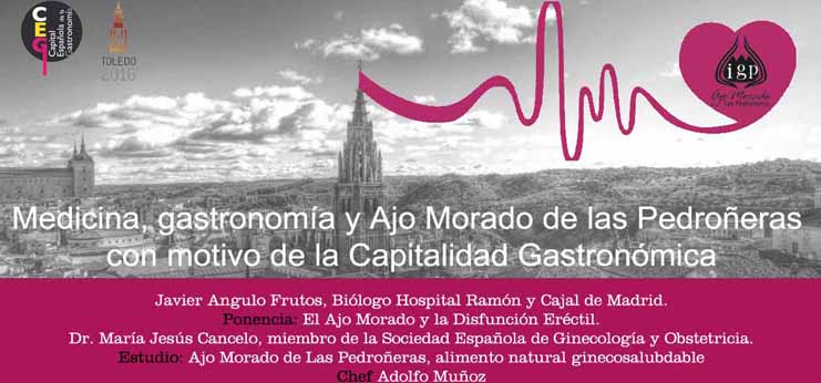 La Indicación Geográfica Protegida «Ajo Morado de Las Pedroñeras» ha organizado un acto público en para este mes en el marco de Toledo, Capital Española de la Gastronomía 2016, que aúna medicina y gastronomía.