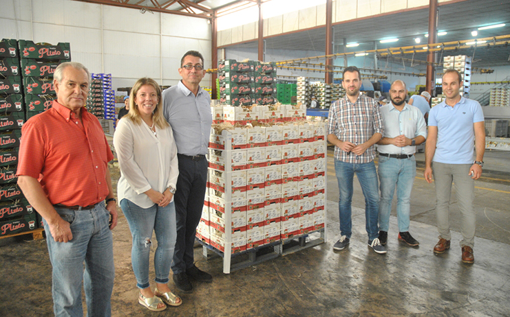 La alcaldesa de Tomelloso Inmaculada Jiménez, ha conocido las nuevas líneas de comercialización de la cooperativa Santiago Apóstol. Su presidente, José Ángel Serrano, ha explicado a los responsables municipales que la apuesta de la cooperativa pasa desde el año pasado por una nueva línea de cebollas y desde este año, otra de calabazas, dos productos muy interesantes ya que tras su recolección pueden ser almacenados para poder comercializarlos posteriormente, consiguiendo así alargar la temporada de la empresa. Santiago Apóstol es la mayor cooperativa hortofrutícola de la región fundada en 1971 para comercializar pimientos y, principalmente, sandía y melón de La Mancha.