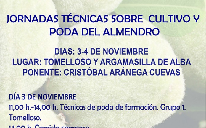 Y el viernes 4 de noviembre, de 9:00 a 14:00 horas, tendrá lugar en Consuegra (Toledo) una charla sobre técnicas de poda del almendro, en la sede de la Asociación Profesional Independiente de Agricultores y Ganaderos.