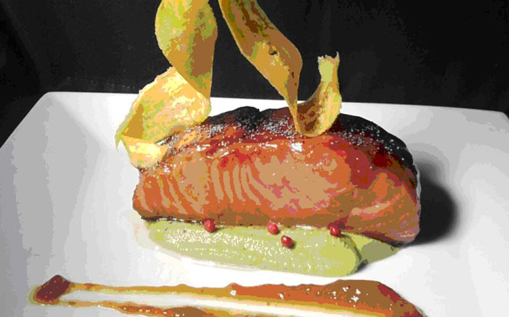 La receta premiada se presentó el 3 de octubre de 2016 y consiste en «Salmón con hummus de guisantes, crujiente de plátano macho, chutney de mango y Ajo Morado de Las Pedroñeras».