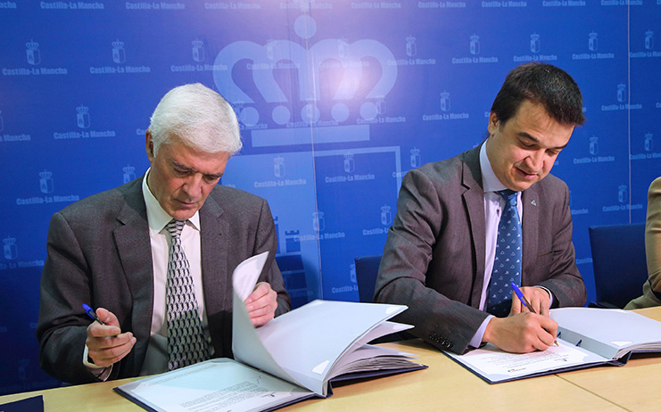El consejero de Agricultura, Medio Ambiente y Desarrollo Rural, Francisco Martínez Arroyo, y el presidente de la Agrupación Española de Entidades Aseguradoras de Seguros Agrarios Combinados (Agroseguro), Ignacio Machetti, han firmado el convenio del Plan de Seguros Agrarios que entrará en vigor en 2017. “Ya en el año 2016, en el Plan de Seguros 2016, pusimos encima de la mesa 4,2 millones de euros en Castilla-La Mancha desde el Gobierno regional, lo que supuso un incremento del 11 por ciento respecto al año anterior en la subvención al sistema de seguros agrarios; ahora, siendo conscientes de que el sector necesita cada vez más estas subvenciones, en el Plan 2017 vamos a incrementar todavía más esta ayuda hasta 4,6 millones de euros, lo que supone un incremento de cerca de un 10 por ciento respecto al año anterior», ha manifestado el consejero.