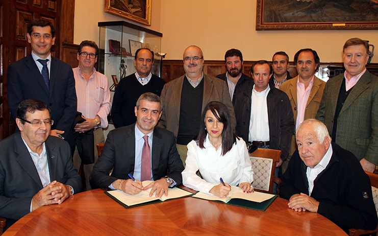 La firma del convenio se ha realizado en presencia del presidente de la Mesa de Cereales, Francisco Alameda, y representantes de la misma, así como de Globalcaja, entidad patrocinadora de la Lonja Agropecuaria.