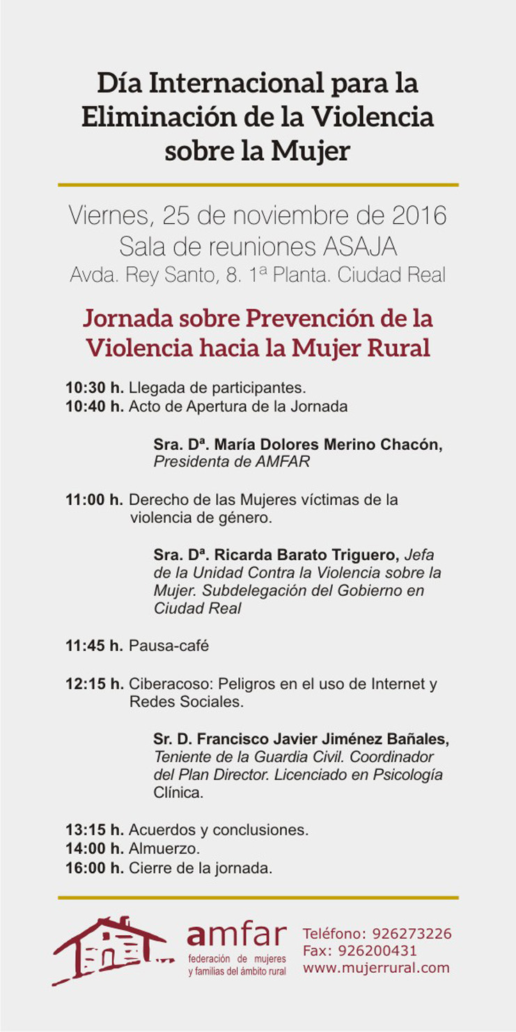 Coincidiendo con la conmemoración del Día Internacional para la Eliminación de la Violencia sobre la Mujer, AMFAR ha convocado este viernes en Ciudad Real a sus Directivas Locales para analizar, la problemática de la violencia de género en el ámbito rural. En lo que llevamos de año, de las 39 mujeres que han sido asesinadas en nuestro país 15 vivían en un municipio pequeño.