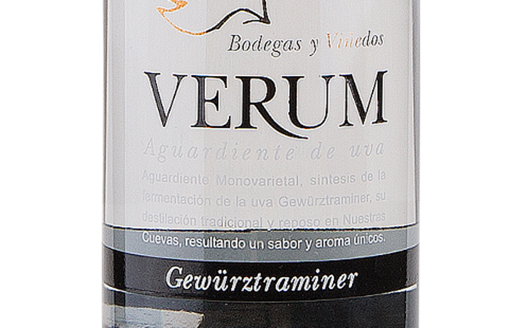 Un destilado de calidad se obtiene de la suma de la materia prima y el proceso de destilación. El Aguardiente de uva Gewürztráminer VERUM es único sumando lo mejor de la uva procedente de viñedos propios y sujeta a una triple selección (viñedo, racimos y granos de uva). Tras una criomaceración en depósito de acero inoxidable se extrae por sangrado parte del mosto dejando el resto junto a hollejos y pepita para que fermenten. Es destilado sin adición de sulfuroso en un aparato especial que calienta al baño maría, en un proceso lento y a temperaturas más bajas de lo habitual, lo que permite conseguir concentrar los aromas de esta variedad, una de las más aromáticas del mundo.