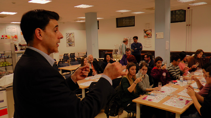 Con una asistencia de más de 50 alumnos y profesores, la ponencia y la cata fueron desgranando los pilares en los que se ha basado estos años la apertura de mercados en cuatro de los cinco continentes.