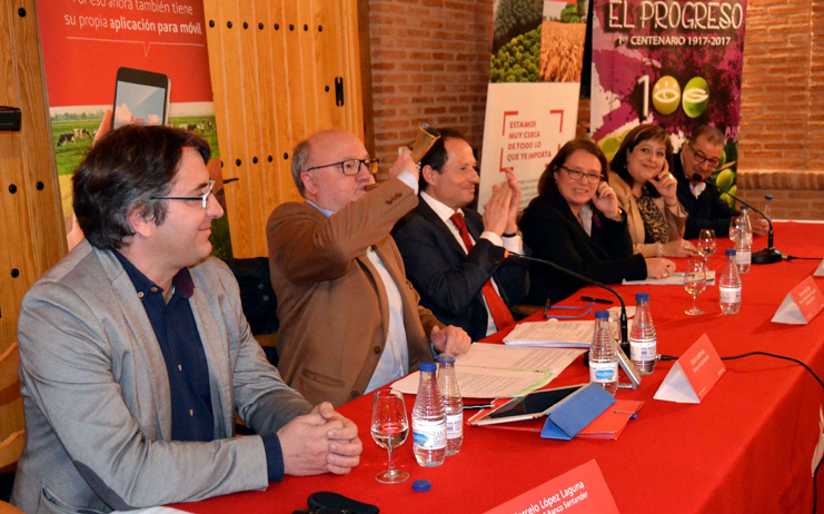 La Cooperativa El Progreso presentó este fin de semana el programa de actos de su Centenario en Villarrubia de los Ojos (Ciudad Real), con una ponencia a cargo del profesor Juan Pablo Maldonado sobre pasado, presente y futuro del cooperativismo agrario y el lunes el periodista radiofónico César Lumbreras, director de Agropopular (COPE) protagonizó un multitudinario acto sobre la PAC, celebrado en la sala de catas de la cooperativa, que se quedó pequeña para acoger a todos los asistentes.
