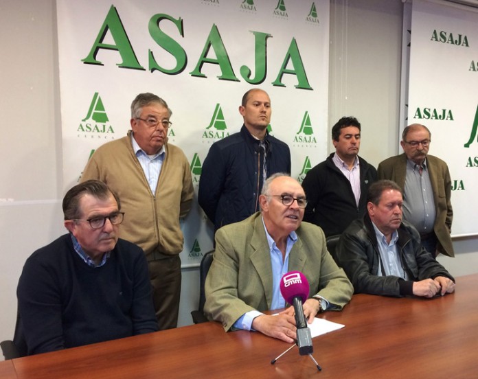 El presidente provincial de ASAJA Cuenca y secretario regional de ASAJA CLM, José María Fresneda, acompañado por varios miembros de su Comité Ejecutivo, ha detallado hoy en Cuenca los motivos que han llevado a la organización agraria a convocar esta movilización y las medidas que proponen para poner solución a sus reivindicaciones.