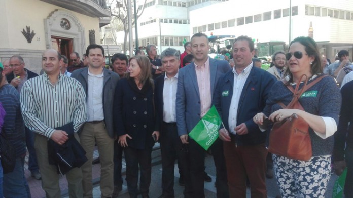 Apoyando al sector agrario, junto a Adrián Fernández se encontraban igualmente el senador Carlos Cotillas, el también senador y alcalde de Bolaños, Miguel Ángel Valverde, la alcaldesa de Socuéllamos y diputada provincial Pruden Medina, y el alcalde de Pozuelo, Julián Triguero.
