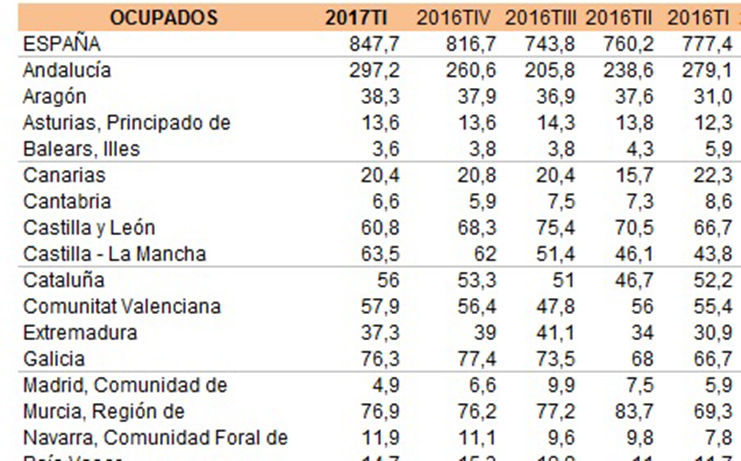Entre las comunidades autónomas con mayor crecimiento se encuentran a la cabeza Castilla-La Mancha y Andalucía mientras que Castilla y León, soporta, en cambio, una pérdida de empleo con un -8,8% de puestos de trabajo menos.