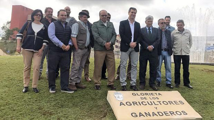 El alcalde de Guadalajara, Antonio Román, y el presidente de la Asociación Provincial de Agricultores y Ganaderos, Antonio Zahonero, han descubierto la placa que desde este fin de semana da nombre a la Glorieta de los Agricultores y Ganaderos.