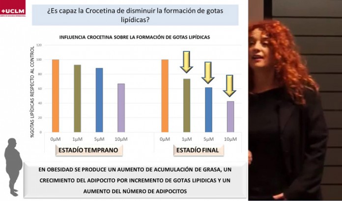 La profesora del Área de Fisiología de la Facultad de Medicina de Albacete Silvia Llorens participó en la XXXVII Feria Agrícola y Ganadera de Castilla-La Mancha, Expovicaman, donde presentó los resultados más destacados en relación al potencial efecto preventivo de la crocetina, un biocompuesto del azafrán, en el desarrollo de la obesidad. Igualmente expuso las perspectivas de la línea de investigación relacionadas con más aspectos de la bioactividad del azafrán que está llevando a cabo junto al profesor de la Universidad de Castilla-La Mancha (UCLM) Eduardo Nava, en colaboración con la Cátedra de Química Agrícola.