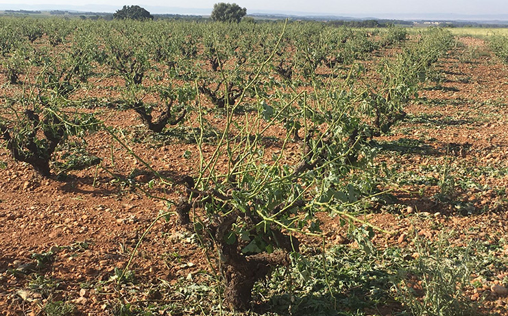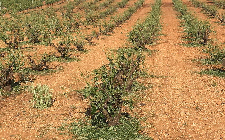 Así uno de los términos más afectados por la piedra ha sido el municipio de Villamalea, donde se han visto afectadas cerca de 2.000 hectáreas del término municipal, ocasionando daños de hasta el 100%, sobretodo en cultivos como la viña, y añadiendo otro problema, la pérdida de las yemas de la cepa que determinarán la floración para el año que viene.