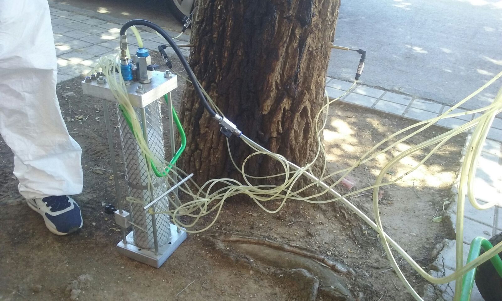Esta técnica consiste en la inyección de la materia activa (insecticida) directamente en el tronco del árbol, evitando con ello las pulverizaciones. El árbol, por medio de los vasos conductores (xilema), traslada la materia activa a todas las partes del mismo. De esta forma, los organismos que provocan las plagas mueren al alimentarse de las hojas.