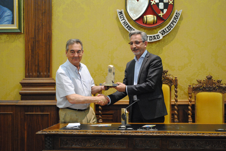 El alcalde de Valdepeñas, Jesús Martín, ha recibido hoy en el salón de plenos de la Casa Consistorial a la directiva que conforma la Cofradía del Vino Reino de la Monastrell, variedad de uva que predomina en Denominaciones de Origen españolas como Alicante, Jumilla o Bullas, y que están conociendo la ciudad y sus vinos a través de diferentes actividades,