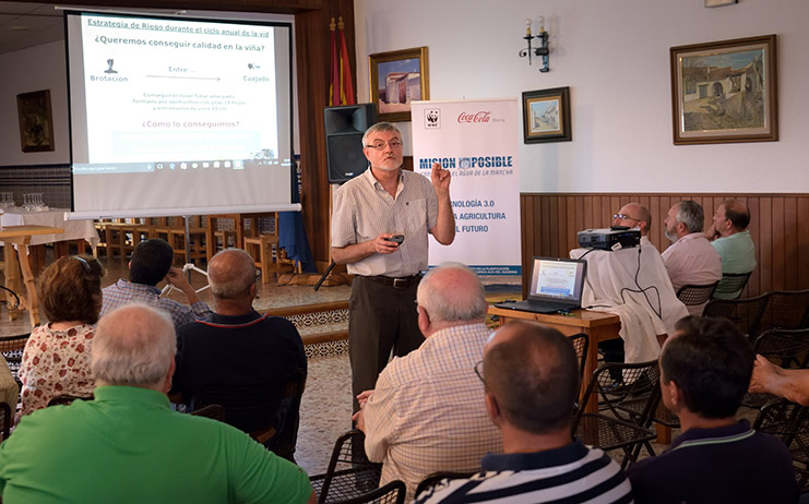 La jornada se enmarca dentro de un proyecto llamado ‘Misión Posible’, que se viene realizando desde 2013 en la zona del Acuífero 23 por parte de la organización medioambientalista WWF y consistente en la utilización de herramientas de alta tecnología para el cálculo de las necesidades estrictas de las plantas, indicaba Alberto Fernández, director del proyecto de WWF España.
