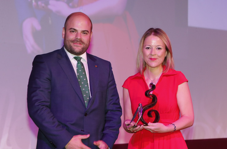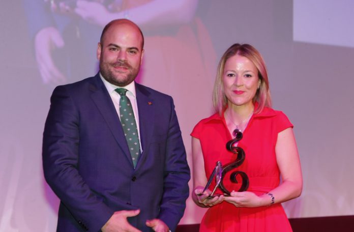 El director territorial de la entidad en Albacete, Carlos Prior, ha entregado el Premio Joven Empresaria a Teresa Gutiérrez García, chef del restaurante “Azafrán” de Villarrobledo.