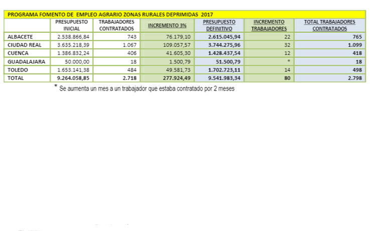 Este incremento en la dotación de los fondos va a permitir ampliar la subvención del Servicio Público de Empleo Estatal (SEPE) para mano de obra en 277.924,49 € , con la contratación de 80 trabajadores más en Castilla-La Mancha. En este sentido, Gregorio ha destacado el “compromiso del Gobierno de España con Castilla-La Mancha, con los municipios castellano manchegos y con los trabajadores de las zonas rurales de la región”.