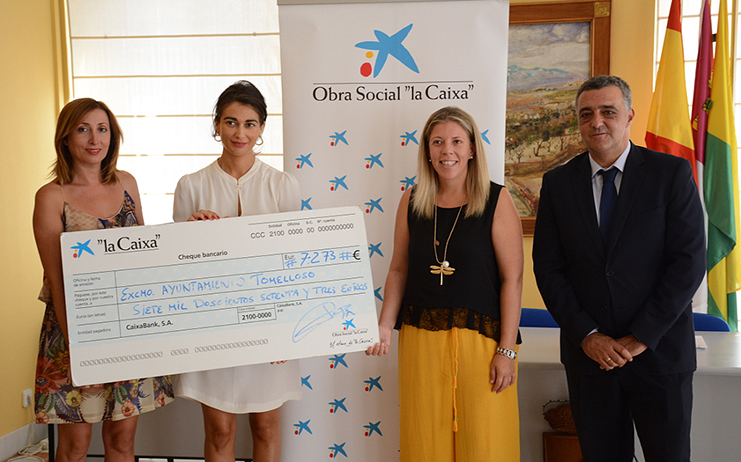 Este lunes se ha hecho efectiva la entrega de una donación de la Obra Social de la Caixa al Ayuntamiento de Tomelloso para colaborar con el programa Guardería de Vendimia del centro municipal de Servicios Sociales. Los 7.273 euros incluidos en la donación se van a destinar a las actividades de ocio y tiempo libre de este proyecto.