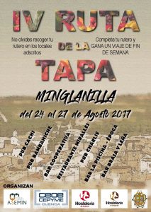 La Asociación de Empresarios de Minglanilla pone en marcha del 24 al 27 de agosto la IV Ruta de la Tapa de esta localidad con el fin de dinamizar la actividad hostelera en estas fechas finales del período estival.