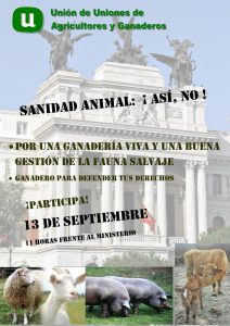 Por eso, la Unión de Uniones de Agricultores y Ganaderos , quien ya manifestara en diversas ocasiones la ineficacia de los planes de erradicación de enfermedades ganaderas, ha convocado teniendo un acto de reivindicación delante del Ministerio de Agricultura, que tendrá lugar el próximo 13 de septiembre, «en protesta por las medidas en vigor y en defensa de una ganadería viva».
