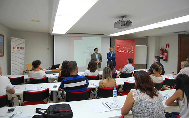 El Curso de Experto en Comercio Internacional que organiza la Cámara de Comercio de Ciudad Real, con el patrocinio de la Diputación Provincial, ha reunido en su sesión inaugural a una veintena de profesionales. Durante la tercera edición de este curso, que se desarrollará hasta el mes de noviembre, todos los asistentes se formarán en aspectos como las relaciones internacionales, negociación, fiscalidad y realidad aduanera.