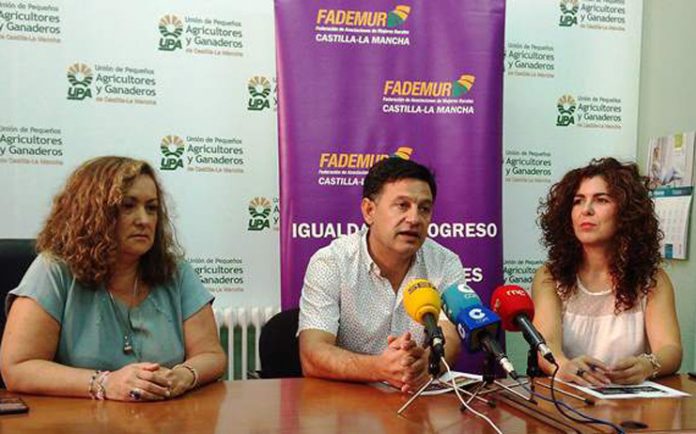 El secretario general de la Unión de Pequeños Agricultores y Ganaderos de Castilla-La Mancha, Julián Morcillo; la presidenta de la Asociación de Mujeres Rurales de Albacete (ALBAMUR), Montserrat Molina, y la responsable de la Federación de Asociaciones de Mujeres Rurales de Castilla-La Mancha (FADEMUR), María Luz Fresneda, han presentado en la sede de UPA Albacete la jornada ‘Las mujeres en el desarrollo económico del Medio Rural’, que se enmarca dentro del día de la Mujer Rural que se conmemora el 15 de octubre.