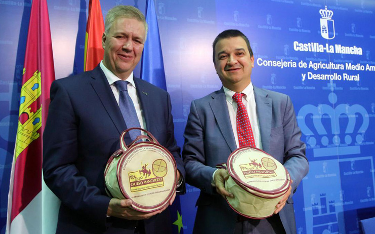 El consejero de Agricultura, Medio Ambiente y Desarrollo Rural, Francisco Martínez Arroyo, ha defendido el trabajo que realizan en Castilla-La Mancha “los más de 700 ganaderos y las 65 queserías que están apostando por este producto de enorme éxito”, durante la presentación de la campaña promocional impulsada por el Consejo Regulador de la Denominación de Origen (DO) Queso Manchego, “para evitar que el consumidor sea víctima de imitaciones en los puntos de venta del país”. Unos spots publicitarios que se han presentado esta mañana en la sala de prensa de la Consejería de Agricultura en Toledo por parte de la empresa publicitaria BeCool y el presidente de la DO Queso Manchego, Antonio Martínez.