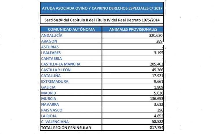 Para estas ayudas el presupuesto para la campaña 2017 es de 30,155 millones de euros, que habrá que repartir entre los 817.754 animales que, de momento, cumplen las condiciones para percibirla. Ello arrojaría un importe, a falta de los ajustes finales, de 36,875393 €/animal. Hasta abril no se conocerá la cuantía definitiva.