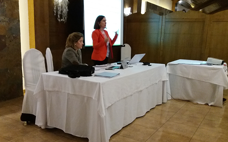 Pilar Feijoó, jefa del departamento de Producción, y Belén Ruiz, técnico del departamento de Estudios, ambas de Agroseguro, fueros las encargadas de realizar las ponencias de la Jornada.