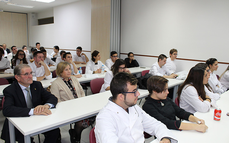 En esta presentación de carácter formativo y divulgativo, medio centenar de alumnos de la Escuela de Hostelería de Toledo y representantes de algunos de los principales restaurantes de la región, como el propio Adolfo, han disfrutado de la charla de Giuseppe Fregapane, catedrático en Nutrición y Bromatología de la UCLM y responsable del Grupo de Investigación en Aceite de Oliva de la Universidad de Castilla-La Mancha (GAOuclm), quien les ha hablado sobre las características saludables del aceite de oliva y las ventajas de su elección frente a otros aceites en nuestra dieta mediterránea, además de poder conocer mejor las propiedades organolépticas, usos y bondades culinarias del aceite de oliva virgen extra –AOVE-.