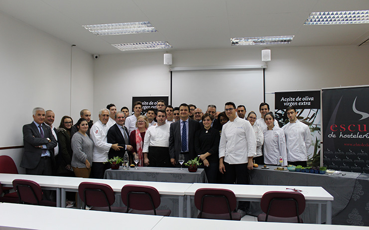 En esta presentación de carácter formativo y divulgativo, medio centenar de alumnos de la Escuela de Hostelería de Toledo y representantes de algunos de los principales restaurantes de la región, como el propio Adolfo, han disfrutado de la charla de Giuseppe Fregapane, catedrático en Nutrición y Bromatología de la UCLM y responsable del Grupo de Investigación en Aceite de Oliva de la Universidad de Castilla-La Mancha (GAOuclm), quien les ha hablado sobre las características saludables del aceite de oliva y las ventajas de su elección frente a otros aceites en nuestra dieta mediterránea, además de poder conocer mejor las propiedades organolépticas, usos y bondades culinarias del aceite de oliva virgen extra –AOVE-.