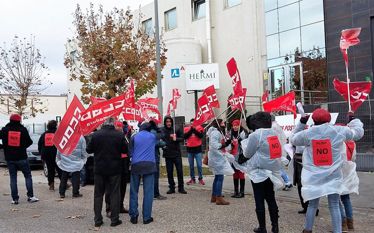 Los manifestantes, con sendas pancartas en castellano y gallego pidiendo “No al cierre de Torrijos”, “Non o peche de Hermi, en defensa dos postos de traballo”, se han concentrado durante dos horas ante las puertas de la empresa. Pero no han conseguido que ningún directivo de Hermi les recibirieran, lamentan desde CCOO.