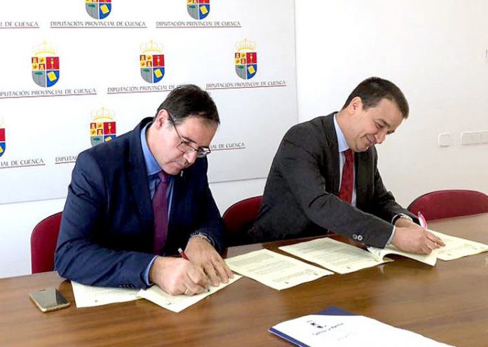 El presidente de la Diputación Provincial de Cuenca, Benjamín Prieto, y el consejero de Agricultura, Medio Ambiente y Desarrollo Rural del Gobierno de Castilla-La Mancha, Francisco Martínez Arroyo, han rubricado este miércoles, en la capital conquense, el convenio de colaboración por el que se destinarán 9 millones de euros al acondicionamiento de caminos, en todos los municipios de la provincia, durante los próximos dos años.