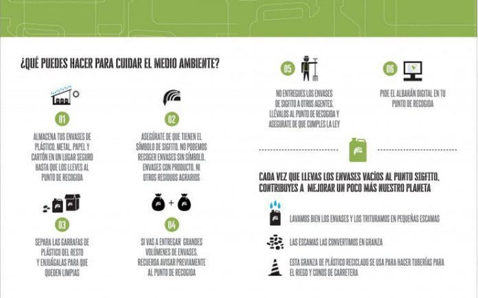 En la nueva campaña se da importancia al destino final de los envases. Gracias a que los agricultores entregan los envases vacíos en los puntos, SIGFITO los puede reciclar en otros materiales de uso industrial como los conos de carreteras o tuberías para el riego. Es una labor ambiental en la que el agricultor tiene un papel muy importante.