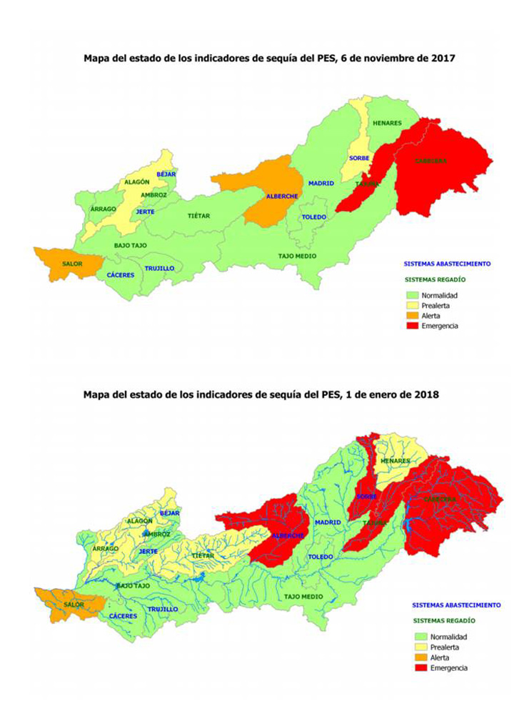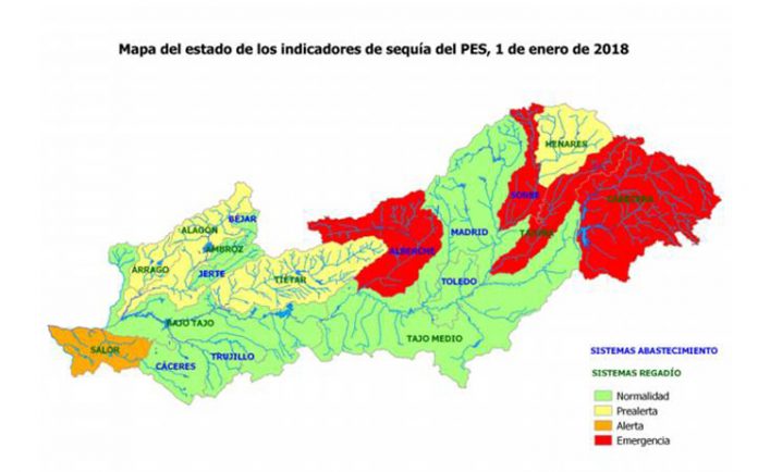 pasando del estado de emergencia al de alerta. El sistema Salor permanece en alerta y los de Alagón y Henares permanecen en prealerta; el reto, continúa en situación de normalidad.