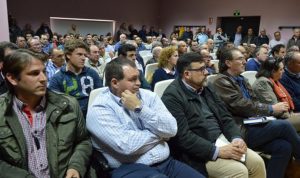 Más de doscientos regantes de la Comunidad de Usuarios de la Masa de Agua Subterránea Mancha Occidental I participaron el viernes en una jornada informativa impartida por el director del servicio de área de la Confederación Hidrográfica del Guadiana, Enrique Vilches, en la que, entre otros temas, los comuneros pudieron solventar dudas acerca de la tramitación de cesión de derechos de agua, acumulación de recursos hídricos, compra de nuevos derechos o cambios de emplazamiento de captaciones. El acto estuvo presidido por la asesora jurídica de la comunidad, Isabel Villaseñor y el presidente de la Masa de Agua Mancha Occidental I, Ángel Bellón.