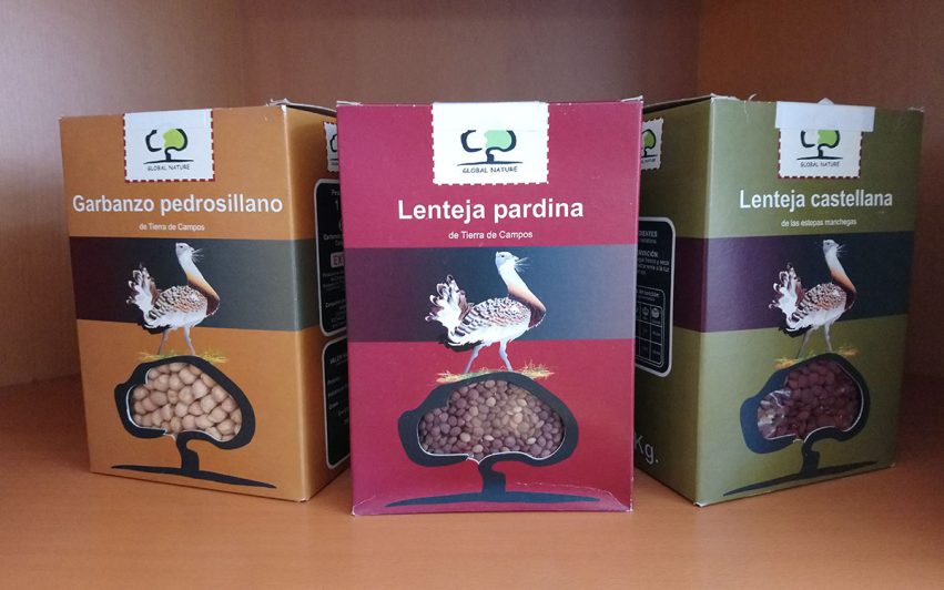 Desde hace 3 años, Global Nature trabaja con diferentes distribuidores alemanes con los que se han comercializado alrededor de 120 toneladas de legumbres en los últimos años. Las legumbres son el producto estrella: lentejas castellanas y pardinas, o garbanzos pedrosillanos son variedades autóctonas de Castilla-La Mancha y Castilla y León, recuperadas para fomentar su cultivo y, con ello, recuperar una práctica agraria tradicional que mantiene la fertilidad del suelo, la rotación de las legumbres en el cultivo. Las legumbres, por tanto, cumplen importantes funciones, son fuente de proteína vegetal, contribuyen en la lucha contra el cambio climático gracias a su capacidad de fijar nitrógeno en el suelo, y alimentan a las aves esteparias como avutardas, sisones o gangas.