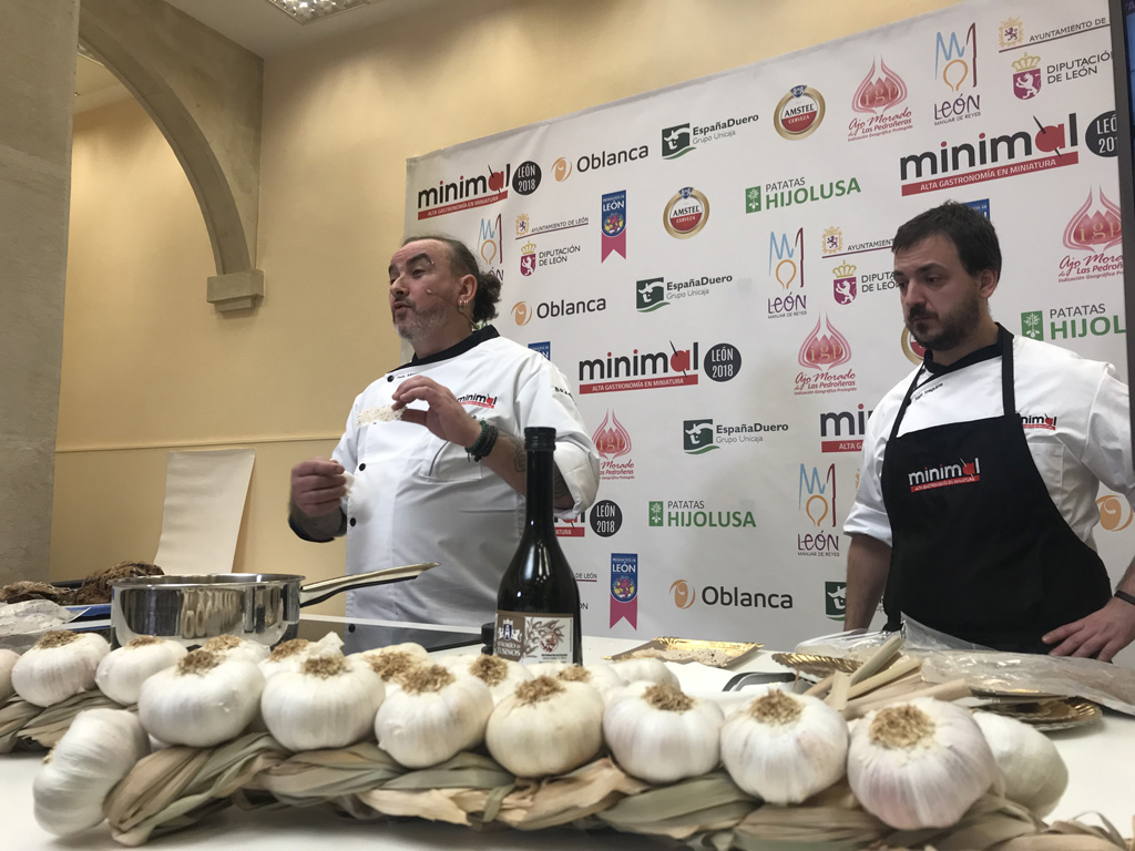 Durante los dos días siguientes, la IGP participó en el Congreso de Tapas de Alta Cocina en Miniatura, Minimal, con una acción dirigida específicamente a profesionales de la restauración. De nuevo se pusieron en valor las características diferenciadoras de este producto de calidad, con una exhibición de trenzado artesano de ajo morado de Las Pedroñeras, a cargo de Agustina Ramírez y como protagonista de uno de los sowcooking dirigidos a un centenar de hosteleros de León, Asturias, Castilla-La Mancha, País Vasco y otras regiones limítrofes.