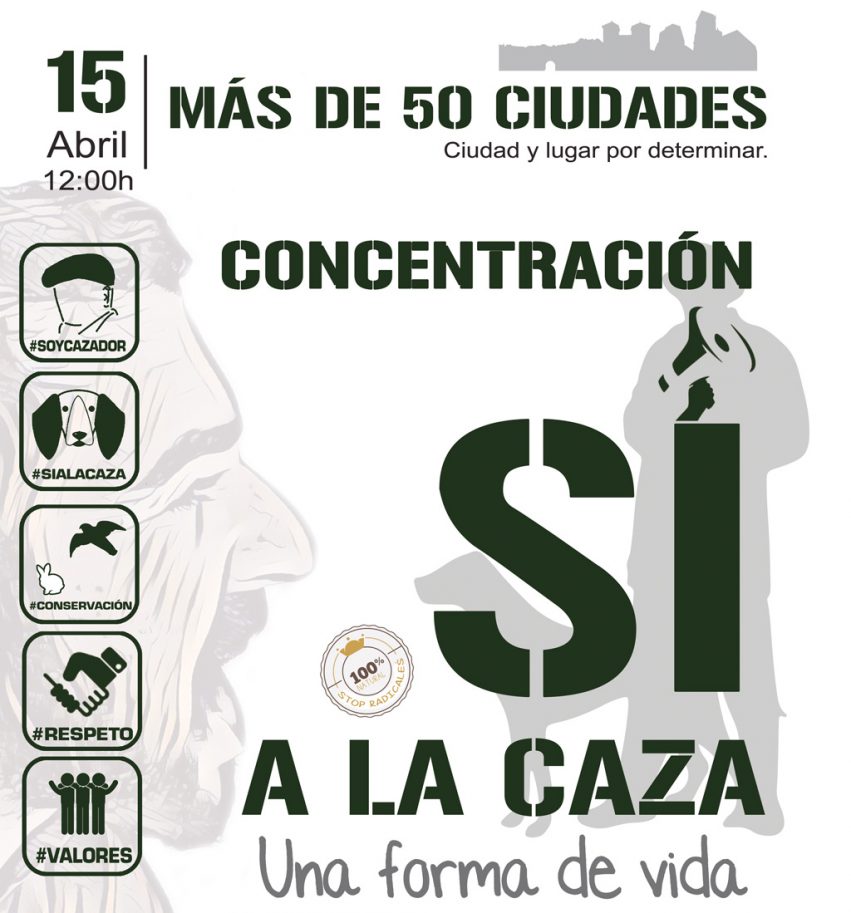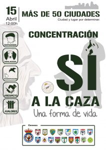 Cazadores de toda España se movilizarán en más de 50 ciudades para participar en la Concentración convocada por la Real Federación Española de Caza, el próximo domingo 15 de abril, para reivindicar la caza como su forma de vida y como actividad fundamental para el desarrollo rural y la conservación.